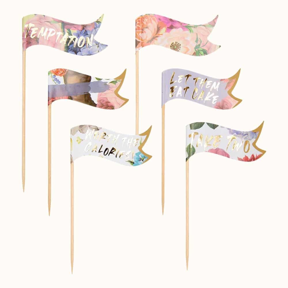 These food flags are a fun and eye-catching party addition as well as being perfect for labelling your Little Cakes at weddings and other events.