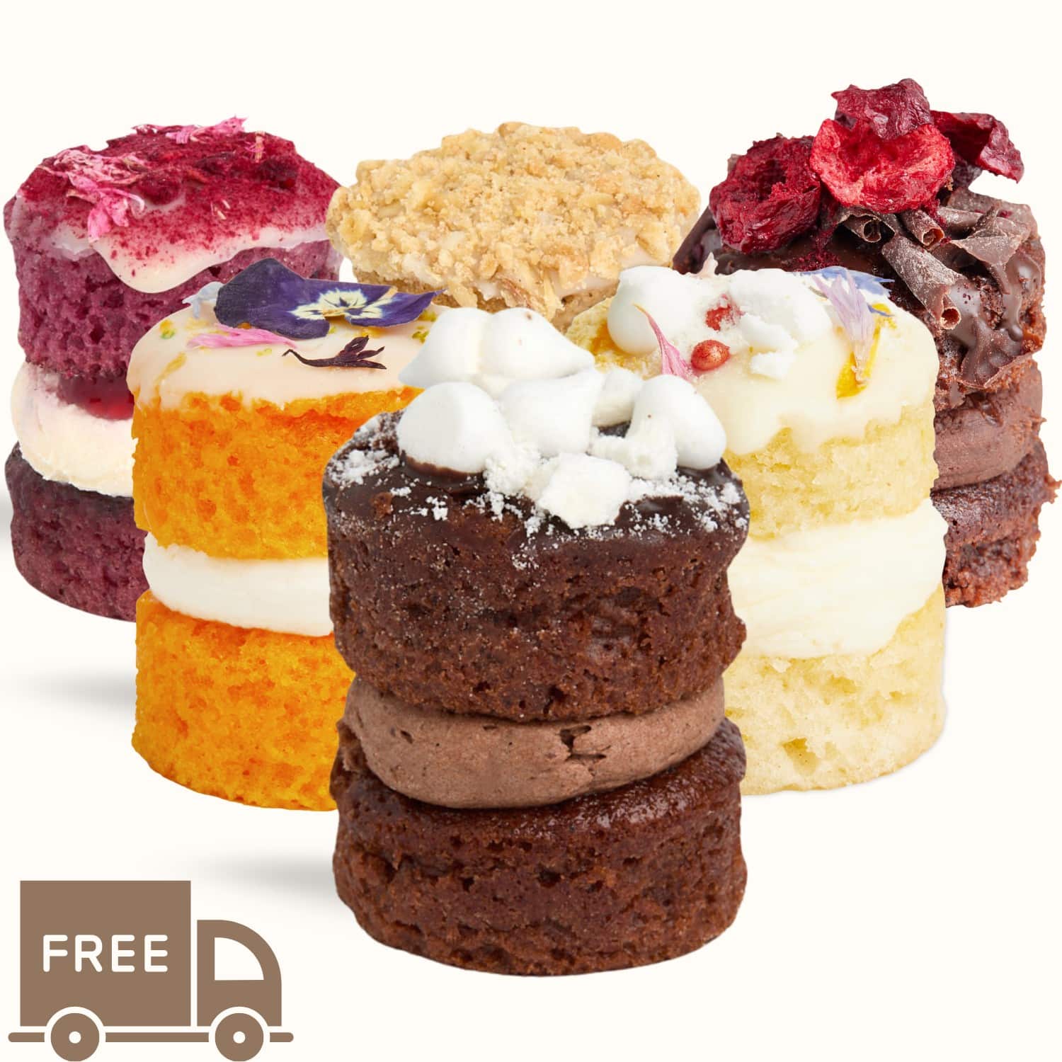 We recommend a serving size of 2-3 of our miniature cakes per person. We’ve created this simple table below to help you calculate how many cakes you require at your event. Simply tot up the total adults or total children at your event to find the corresponding total number of cakes required. Throwing a mixed party? Simply add the number of cakes required for your adult guests to the number of cakes required for your child guests, and you will arrive at your grand total cakes required.
